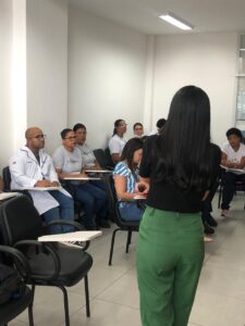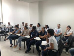 Realizado no dia dezoito de abril de dois mil e vinte e quatro, às nove horas a primeira turma e as quatorze horas a segunda turma, na Policlínica Regional na cidade de Feira de Santana – BA, o curso de Limpeza e Desinfecção Hospitalar, com a participação dos sócios cooperados que prestam serviços a essa unidade.