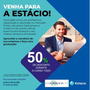 Parceria firmada entre a COOPSERVI  e a ESTÁCIO concede 50% de desconto durante todo curso!